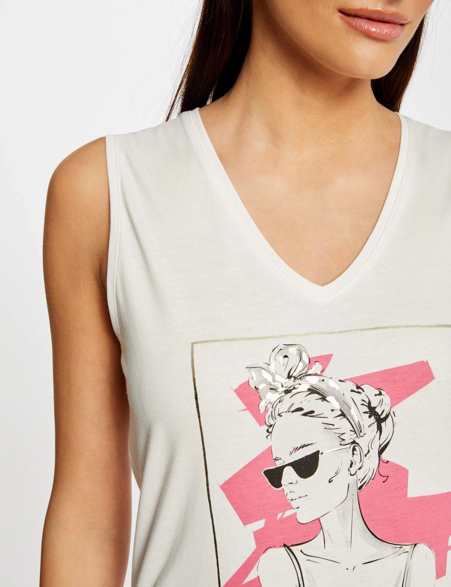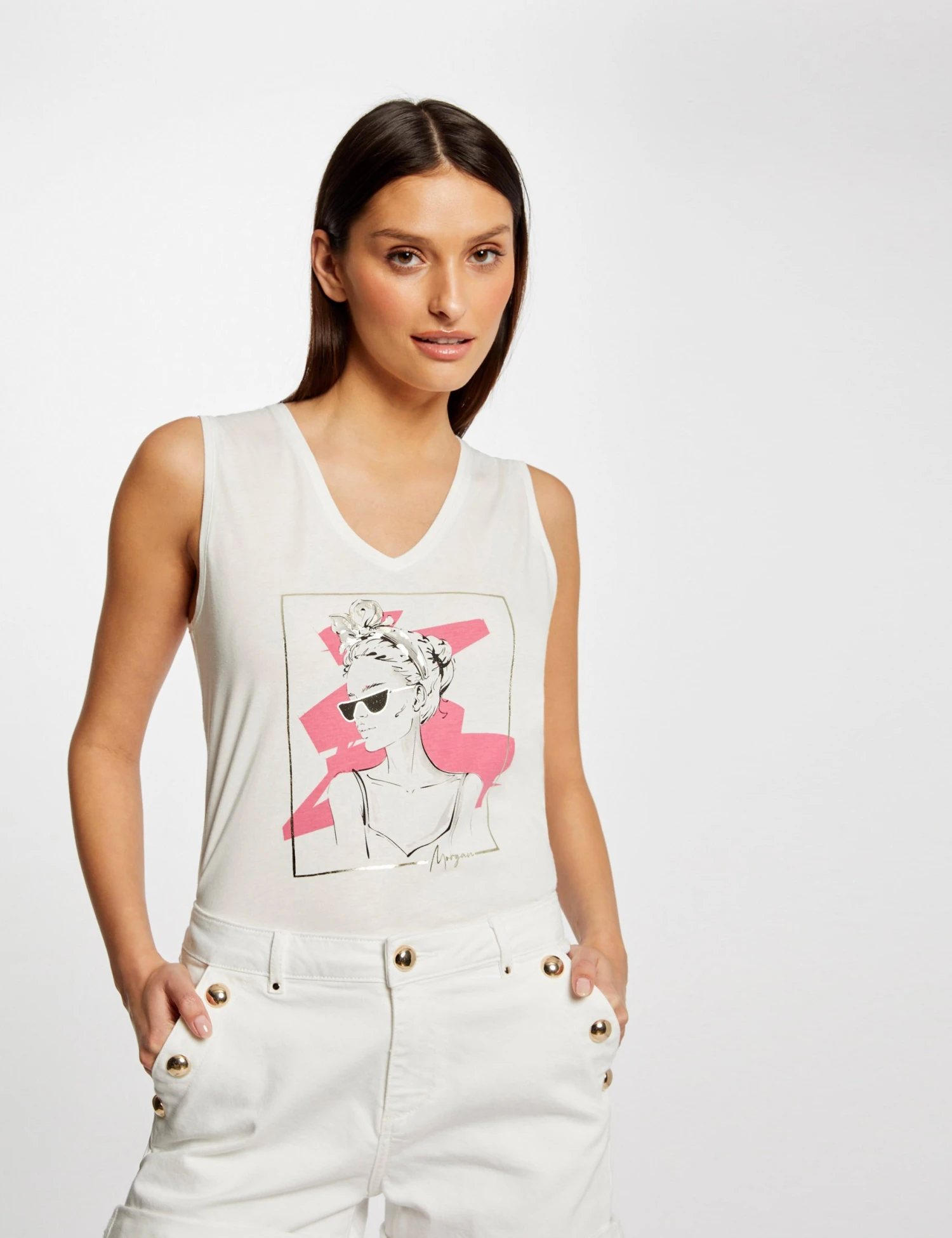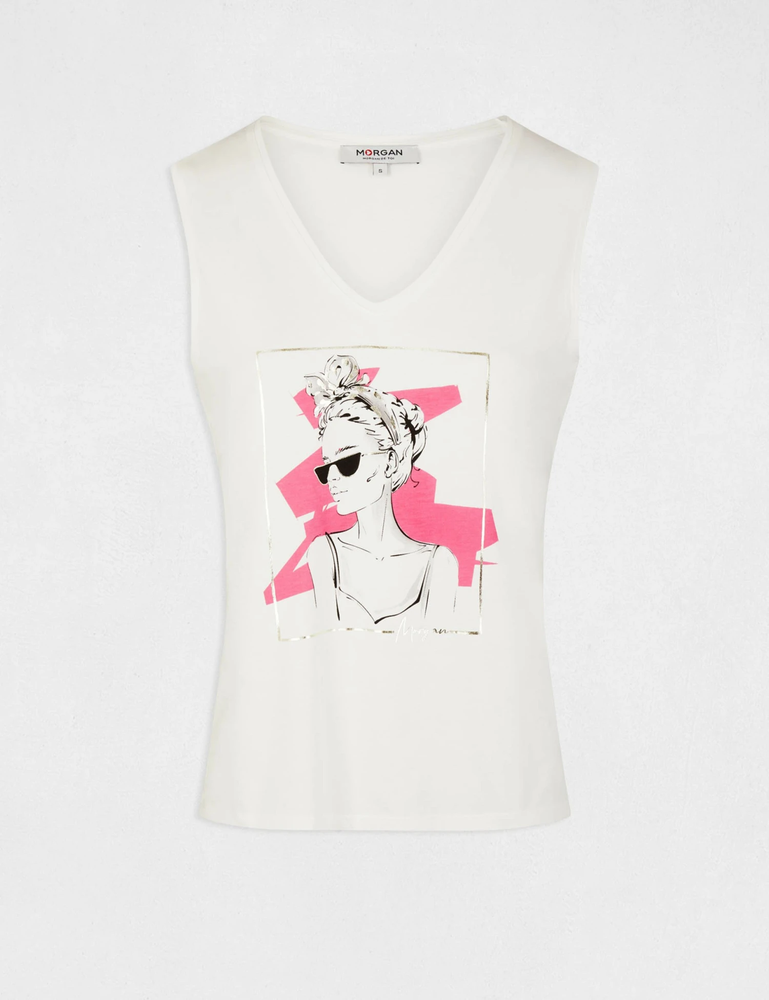 Débardeur Bretelles Larges à Inscription Ecru Femme