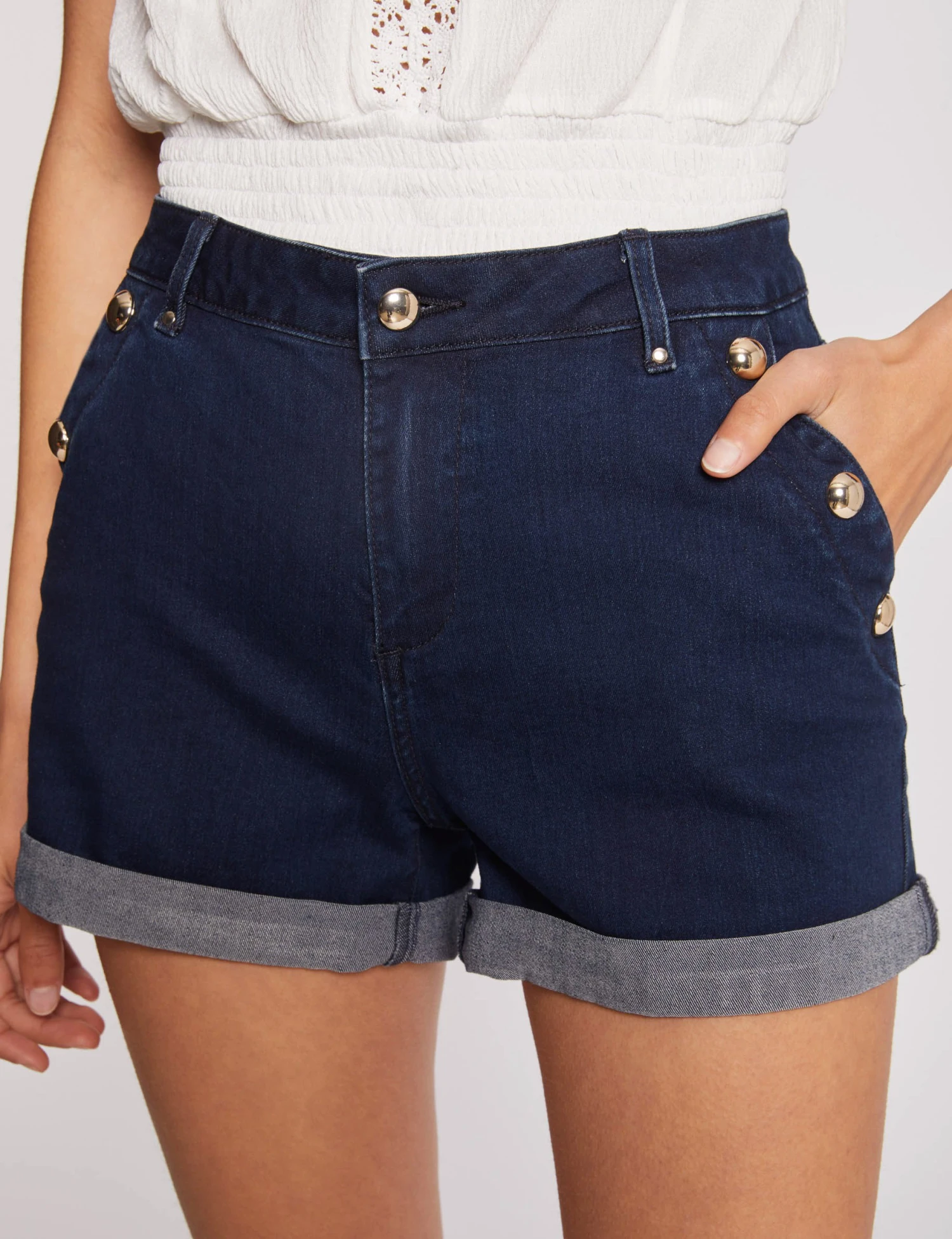 - Short slim en jean à pont