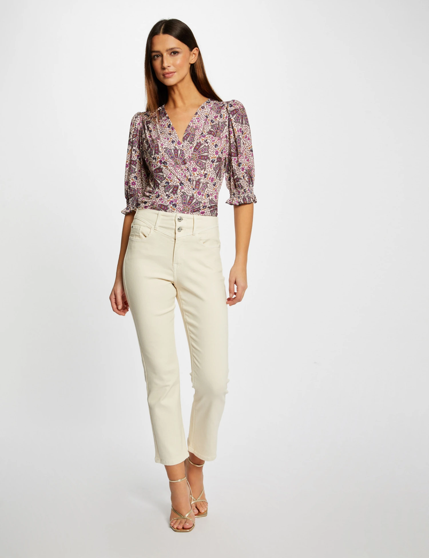 T-shirt Manches 3/4 Imprimé Végétal Multico Femme